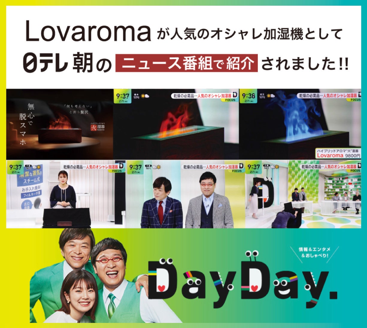 などなど、数々のメディアに、睡眠環境を整える、【新感覚のアロマ"火"湿器】として紹介されています!!