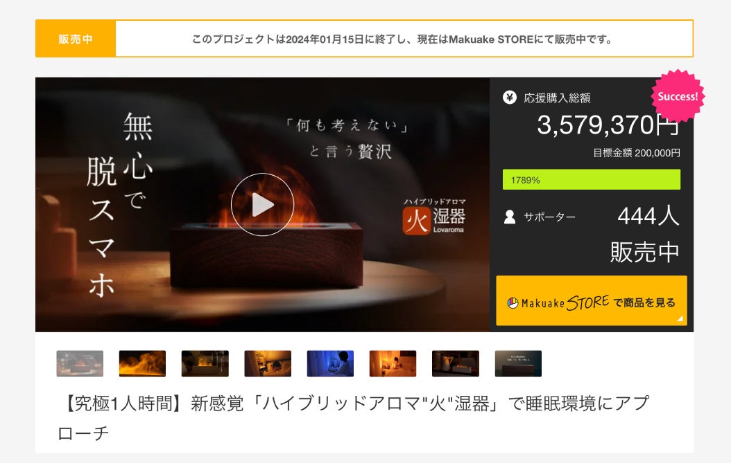 Makuakeプロジェクトでは、【購入総額 3,579,370円】の大変反響があった、睡眠環境を整える「ハイブリッドアロマ火湿器」、 待望の一般販売を開始致します。