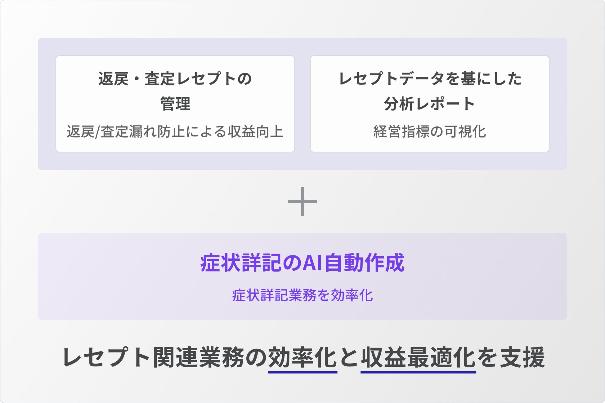 今回の新機能により、これまでの管理・分析支援に加え、レセプトの作成プロセスそのものの効率化を実現。医療機関におけるレセプト関連業務の効率化と収益最適化を支援します。
