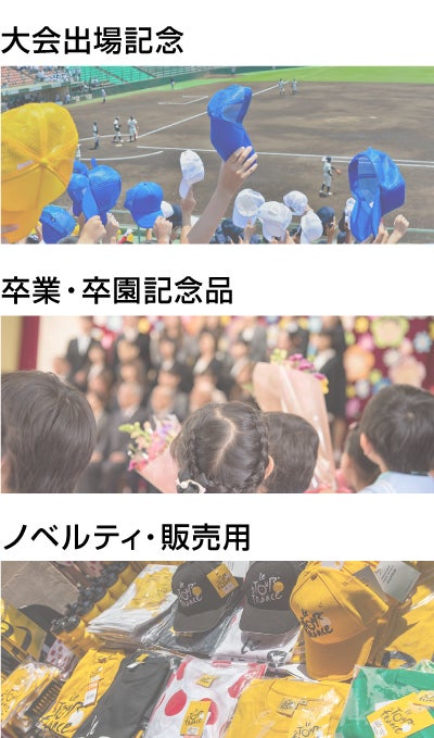 スポーツ観戦や部活動の応援、卒業・卒団の記念品、企業イベントのノベルティ・販売用グッズとしておすすめです。