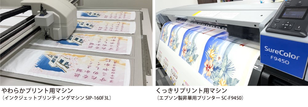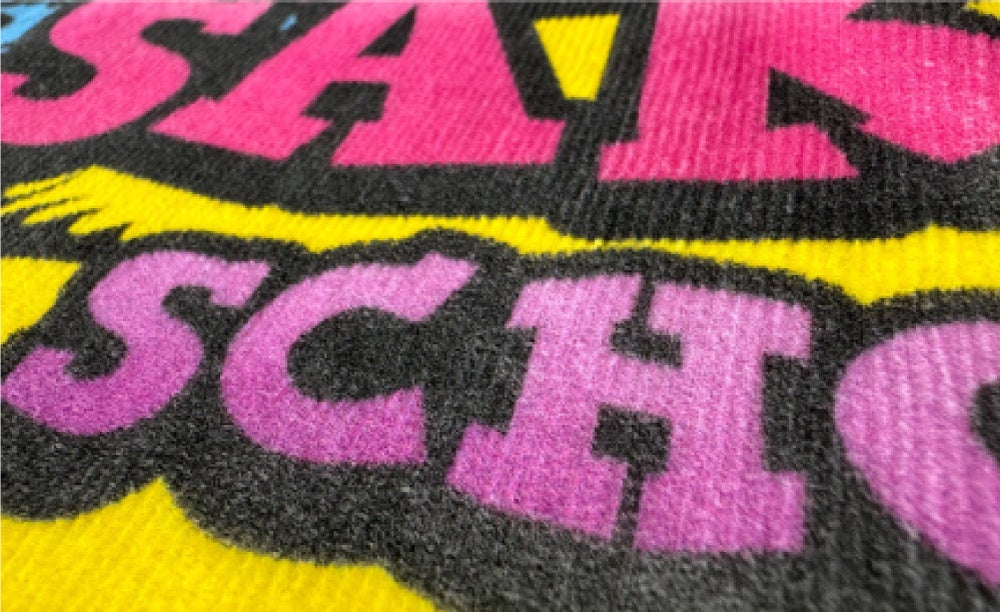 インクに熱をかけて気化させ、ポリエステル100%の生地に染み込ませる、なめらかな触り心地の仕上がりです。