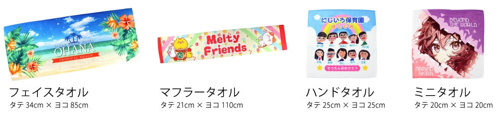 ※ワンデイタオル(やわらかプリント)は3種類のサイズ展開です。