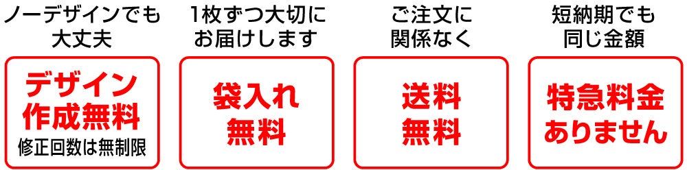 デザイン作成や袋入れ、送料、特急料金、これらをすべて完全無料にてご提供します。クラティージャパンなら初めての方でも安心してオリジナルタオルを楽しむことができます。