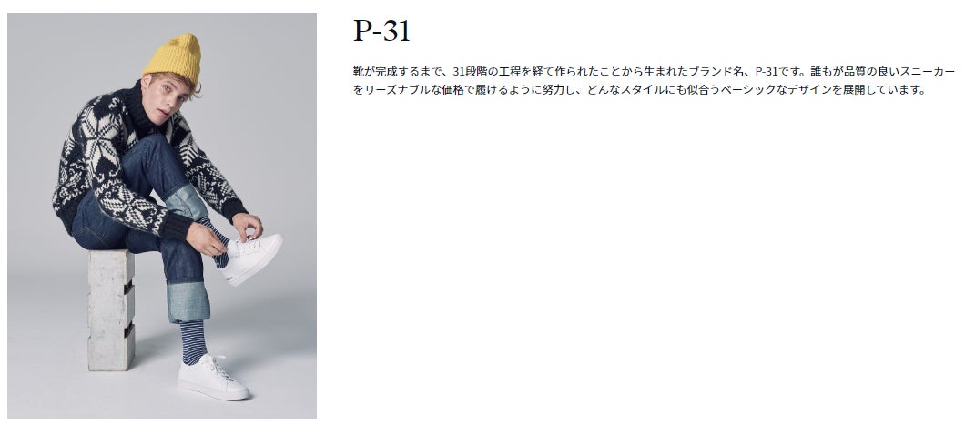 スニーカーブランド『P-31』がMUSINSA入店記念で人気商品が最大30%OFF P-31というブランド名は、13項目のテストと実験、31段階の工程を経て作られることから名付けられました。