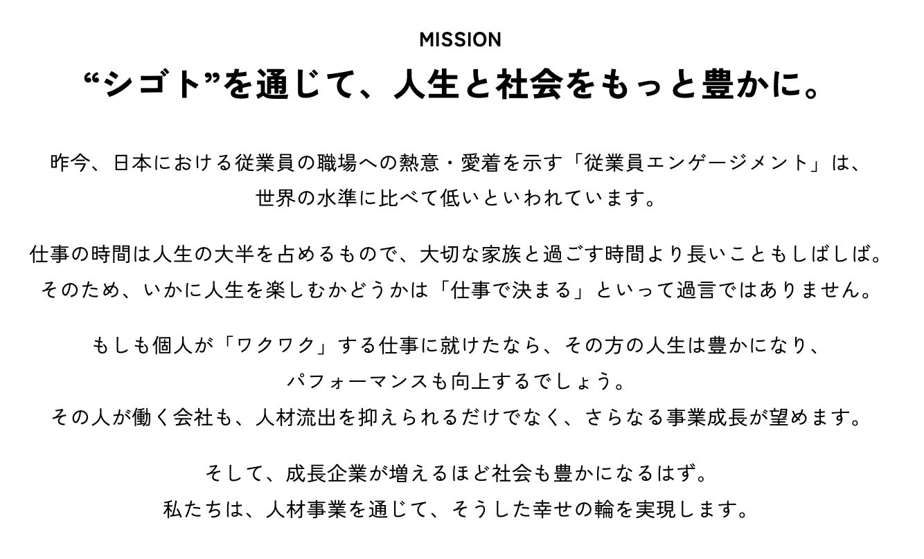 スタニアのミッションは『「シゴト」を通じて、人生と社会を豊かに。』です。「シゴト」とは、自分が本当にやりたいことや社会に役立つことを意味しています。