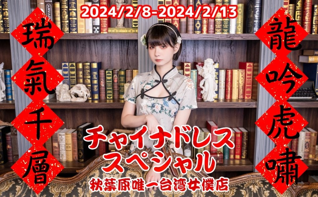 2024年2月8日から13日まで、ツクヨミメイドがチャイナドレスでお給仕いたします。台湾人メイドの本物のチャイナドレスによるお給仕をぜひお楽しみください。