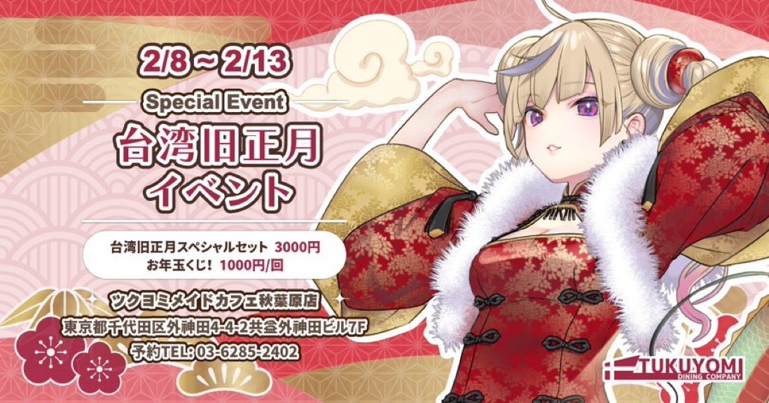 2024年2月は、台湾旧正月イベントの他にもイベントが目白押しです。ぜひこの機会にツクヨミメイドカフェ秋葉原店にご帰宅ください。