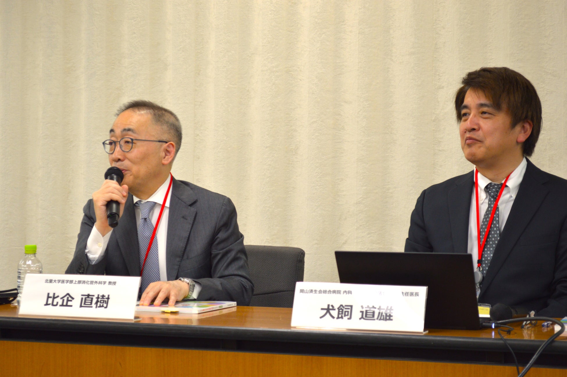 プレスセミナーでは、本書籍の編集・制作にも関わった北里大学医学部 外科 上部消化管外科学 比企 直樹 主任教授および岡山済生会総合病院 内科・がん化学療法センター 犬飼 道雄 主任医長を登壇者に招き、「がん患者さんのための栄養治療」についてお話をしていただきました。