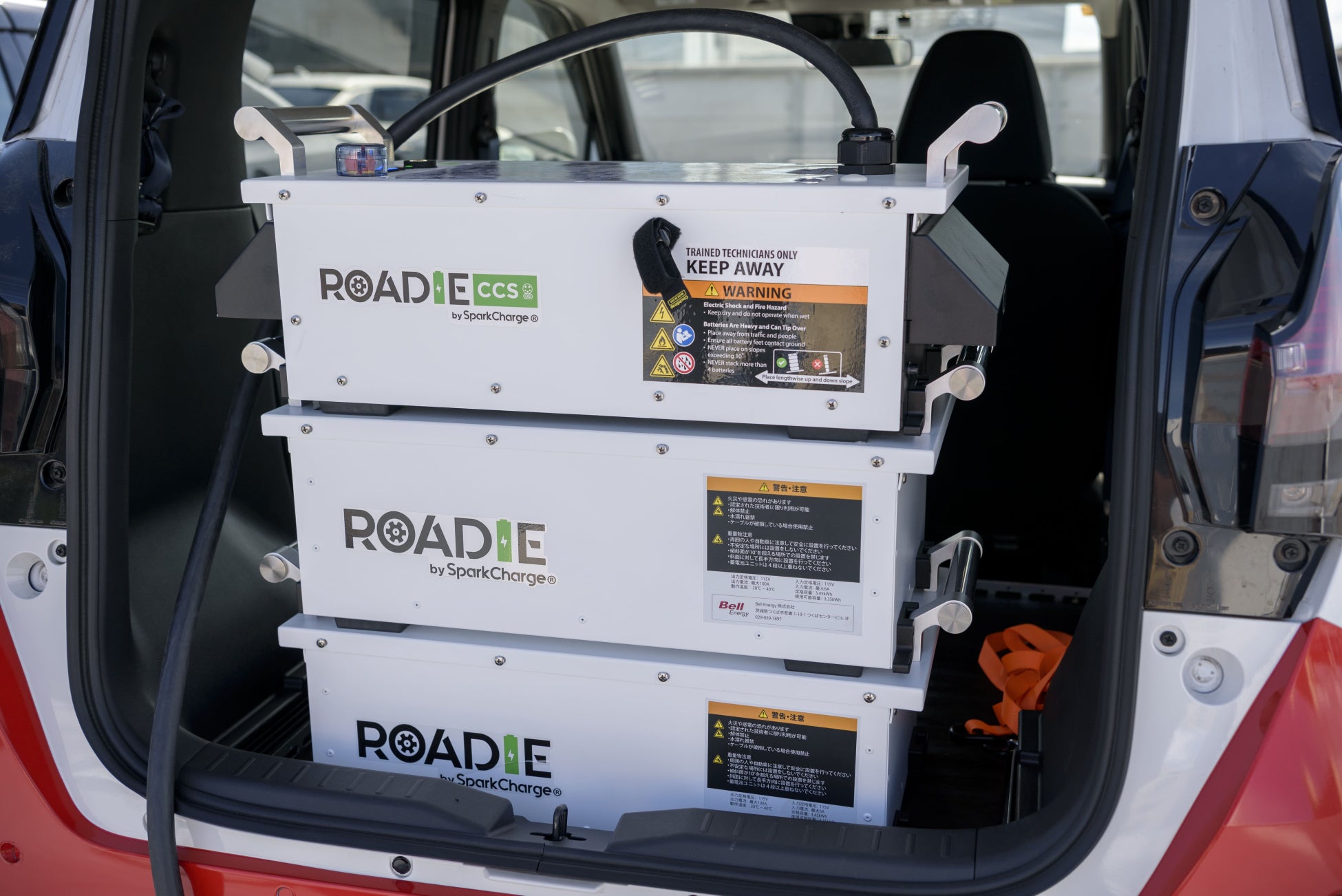 Roadie V2は、ベルエナジーが米国のSpark Charge社と共同でRoadie V2の開発に取り組んでおり、「どこでも急速充電」をコンセプトに外部入力設備不要の完全スタンドアローン設計されたモジュール式ポータブルEV急速充電器。