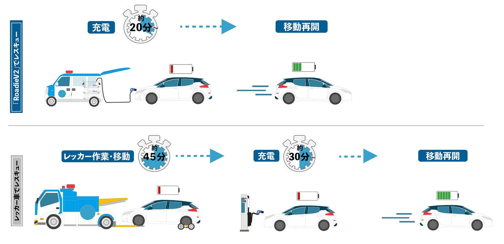 参考:EV電欠時、従来のレスキュー方法と現場充電でのレスキュー方法の比較