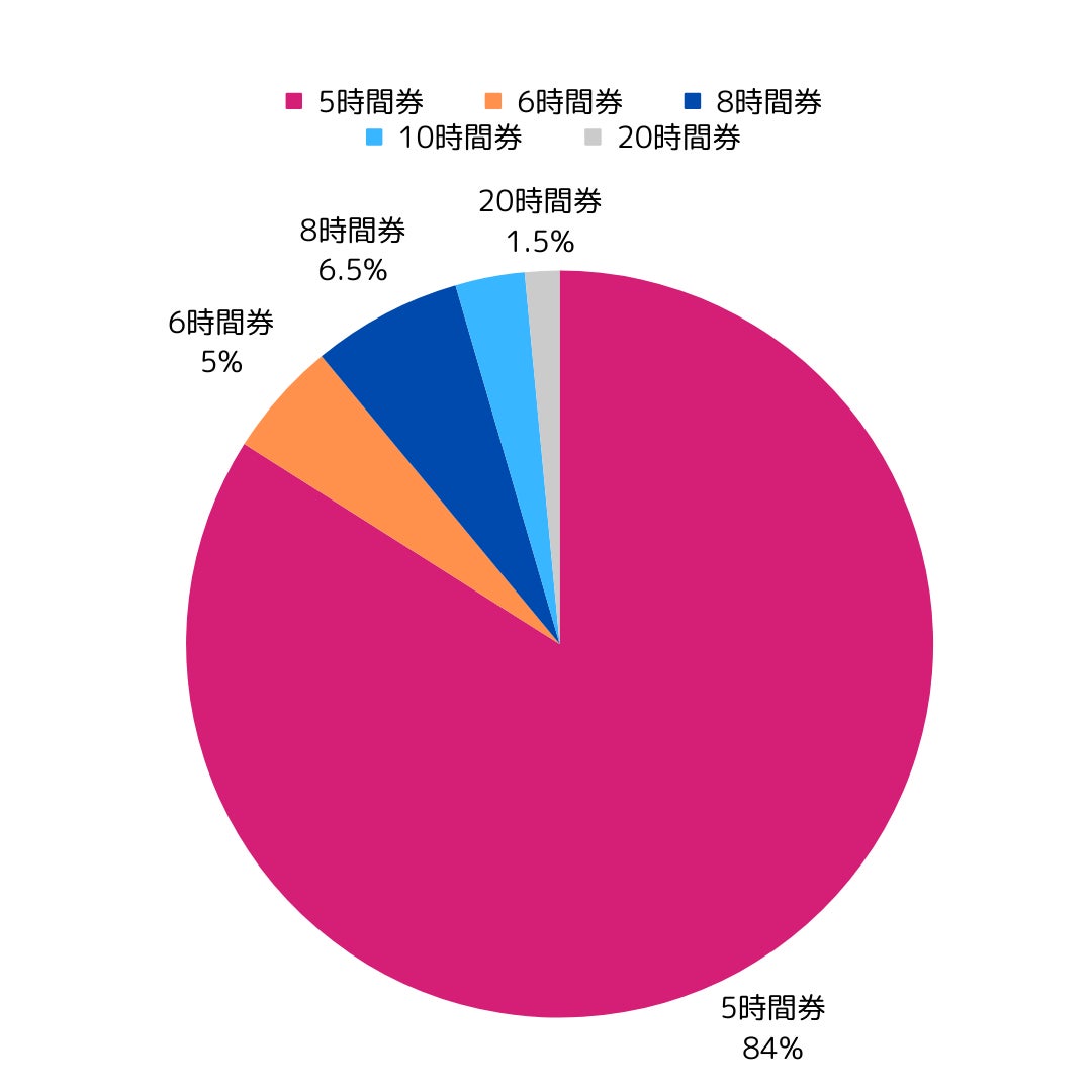 時間券には、5時間、6時間、8時間、10時間、20時間の5種類がありますが、その中で5時間券が最も人気がありました。