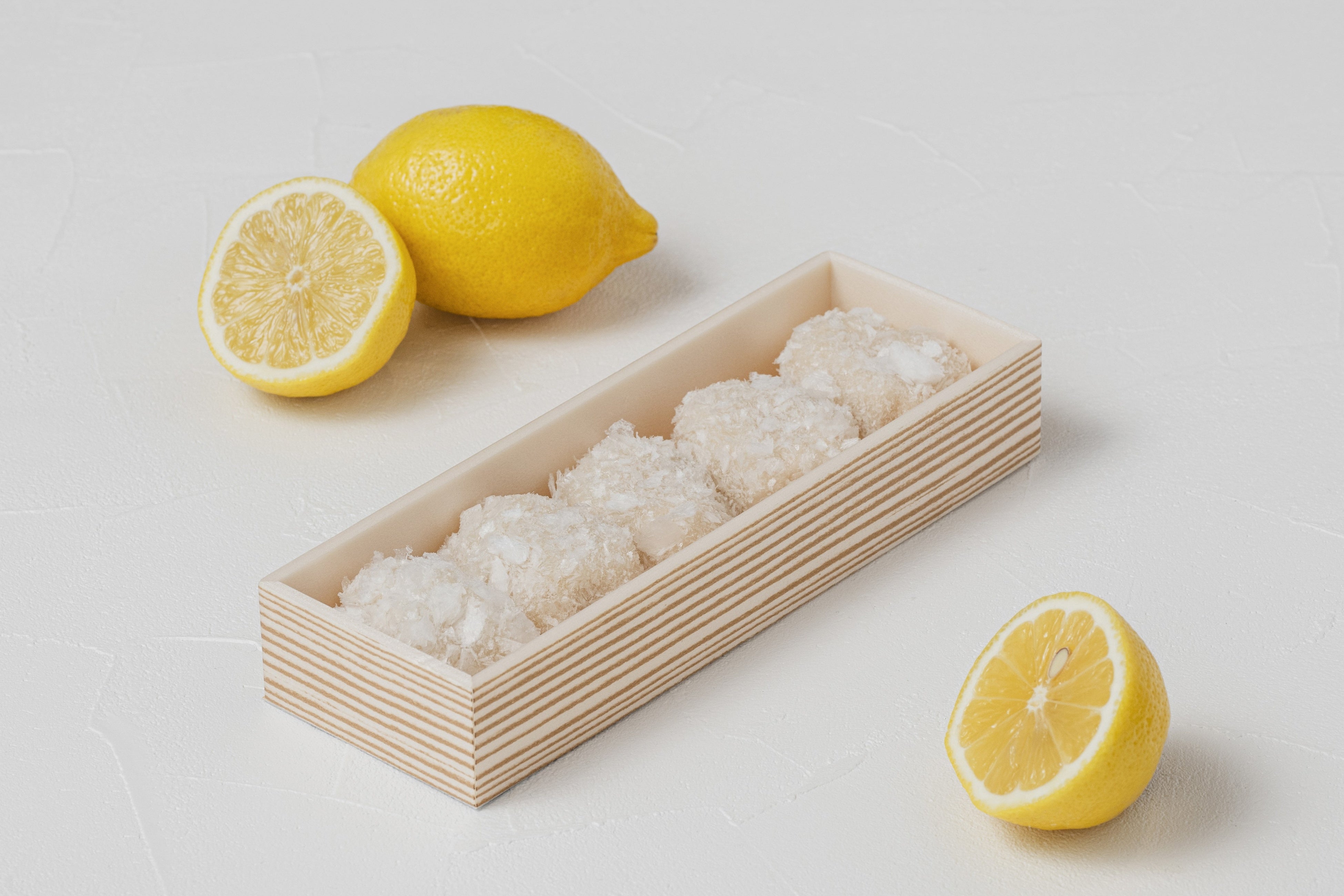 原材料:レモン、白餡、瀬戸内レモンリキュール、クエン酸、香料、氷餅
