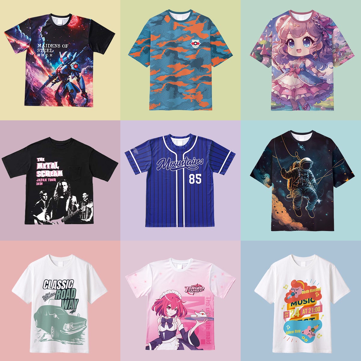 【新発売】全面プリントで魅せるエンタメグッズ「オリジナル フルグラフィックTシャツ」が新登場!100枚~イベントも日常もワクワクするファングッズをECサイトで作製可能!