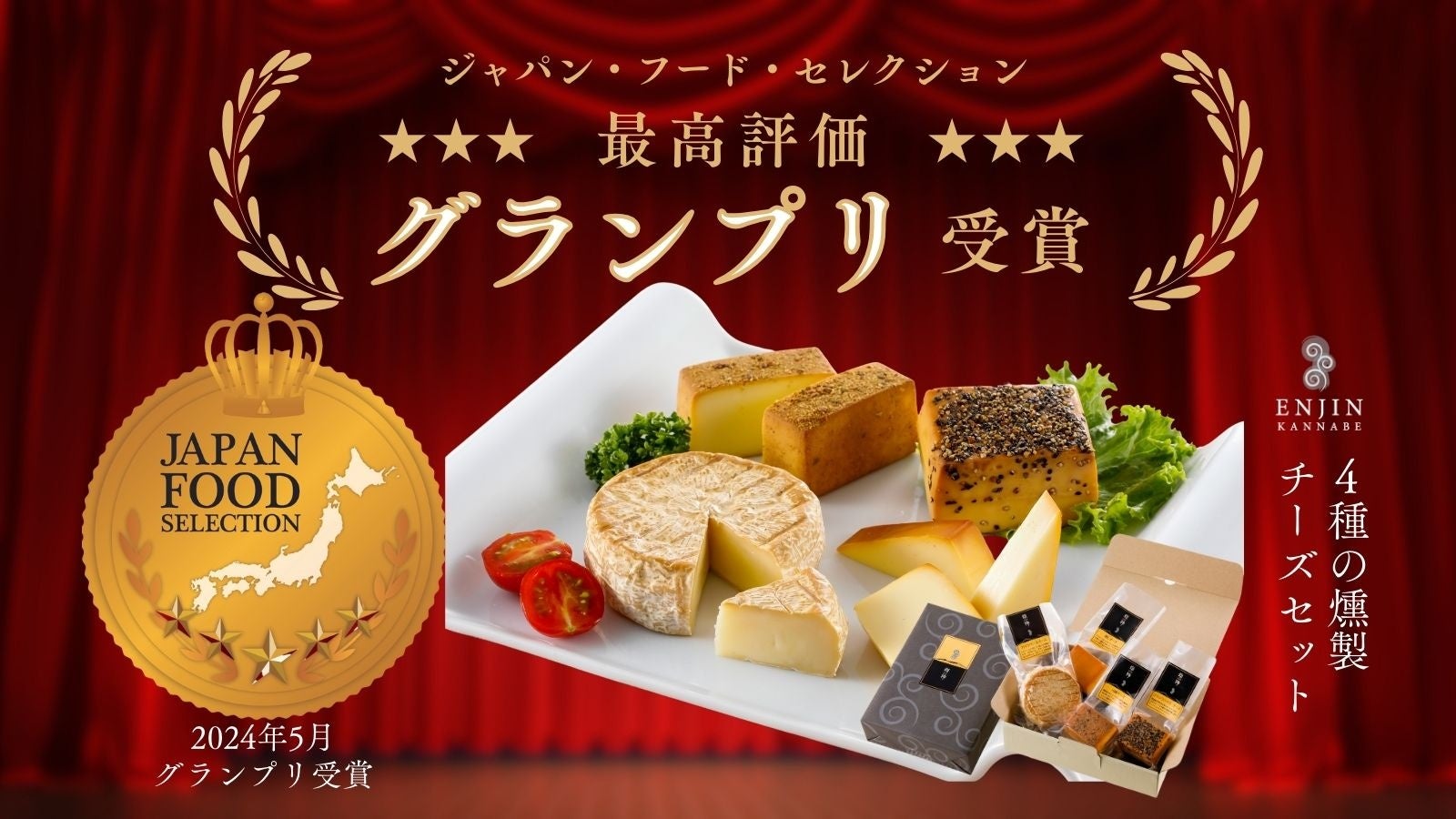 燻製工房煙神(えんじん)を運営する株式会社神鍋ヴィラージュ(本社:兵庫県豊岡市、代表:井上大作)は、第75回ジャパン・フード・セレクション(一般社団法人フードアナリスト協会主催)において「4種の燻製チーズセット」が最高評価のグランプリを受賞いたしましたことをお知らせいたします。本商品は、本物の煙でいぶした燻製チーズを、より多くの人に食べてもらいたい、おいしさを知ってほしいという思いで開発しました。工房のある但馬(たじま)地域の特産である朝倉山椒を使用したものや、カマンベールなどバリエーションを増やしていきました。
