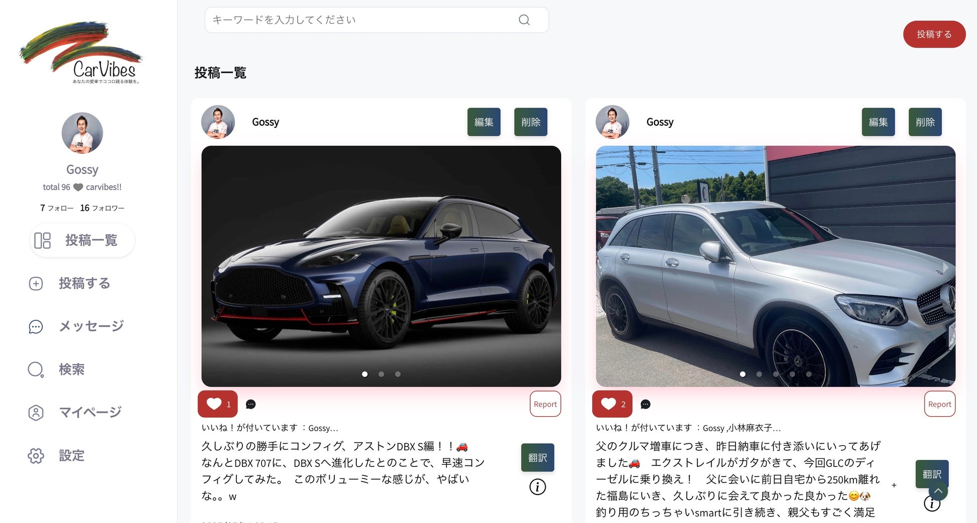 9ヶ国言語に対応した多言語対応につき、ポテンシャル含め「世界20億人を対象としたクルマに特化したSNS」として、邁進してまいりますので、愛車をお持ちの皆さま、どうかCarVibesでご自身の愛車の日常のつぶやきとして、気軽にお使いください。