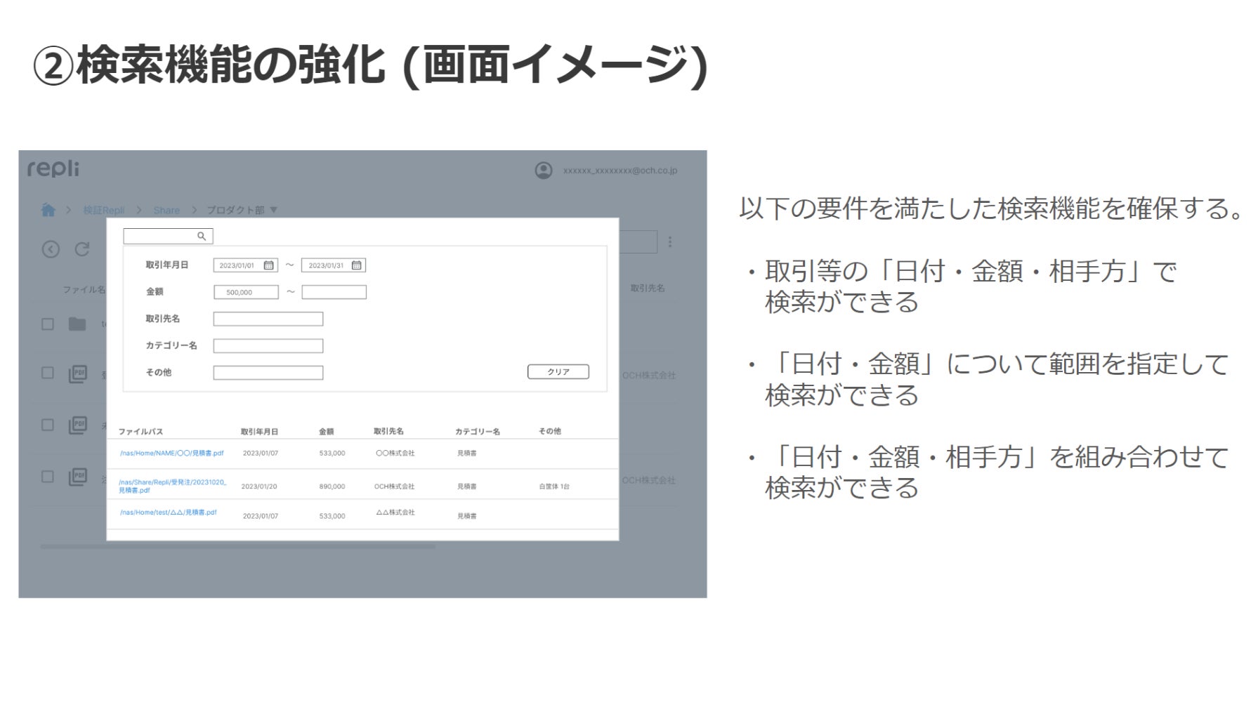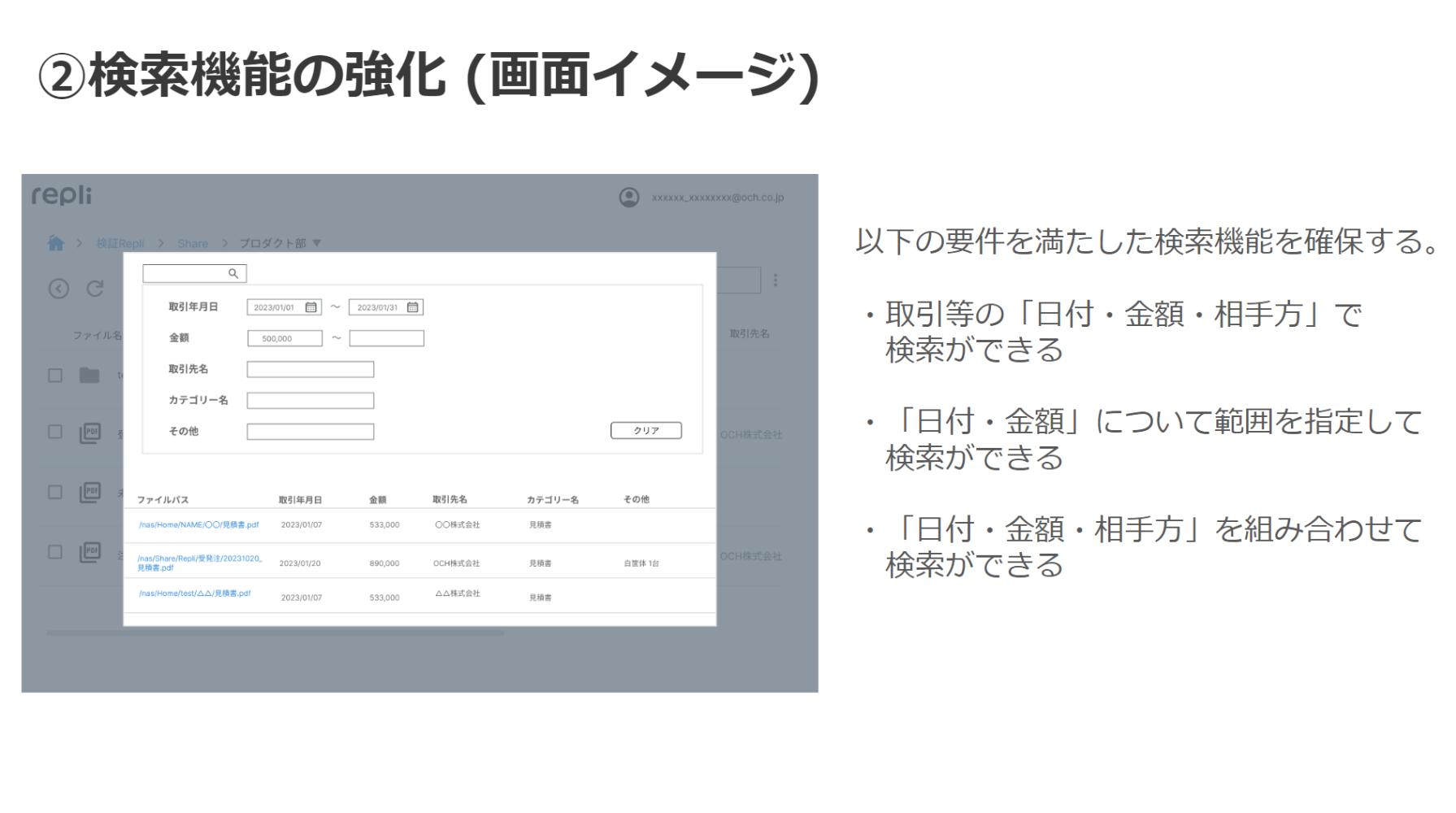 そこで、Repliにも「可視性の確保」の一部要件に対応する為、検索要件を満たした検索機能を追加いたします。