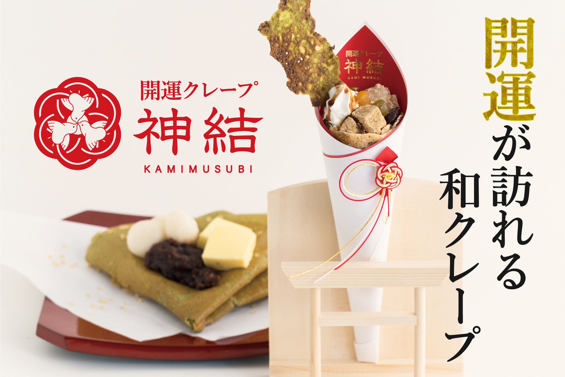 開運スイーツカフェ TOYOUKE STAND が"日本茶ロイヤルミルクティー 神縁(カミエニシ)に続く、自社オリジナルブランドである"開運クレープ 神結(カミムスビ)"を発表。