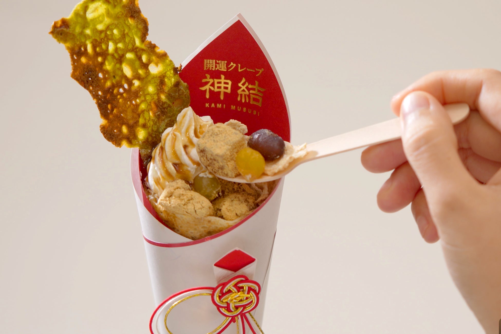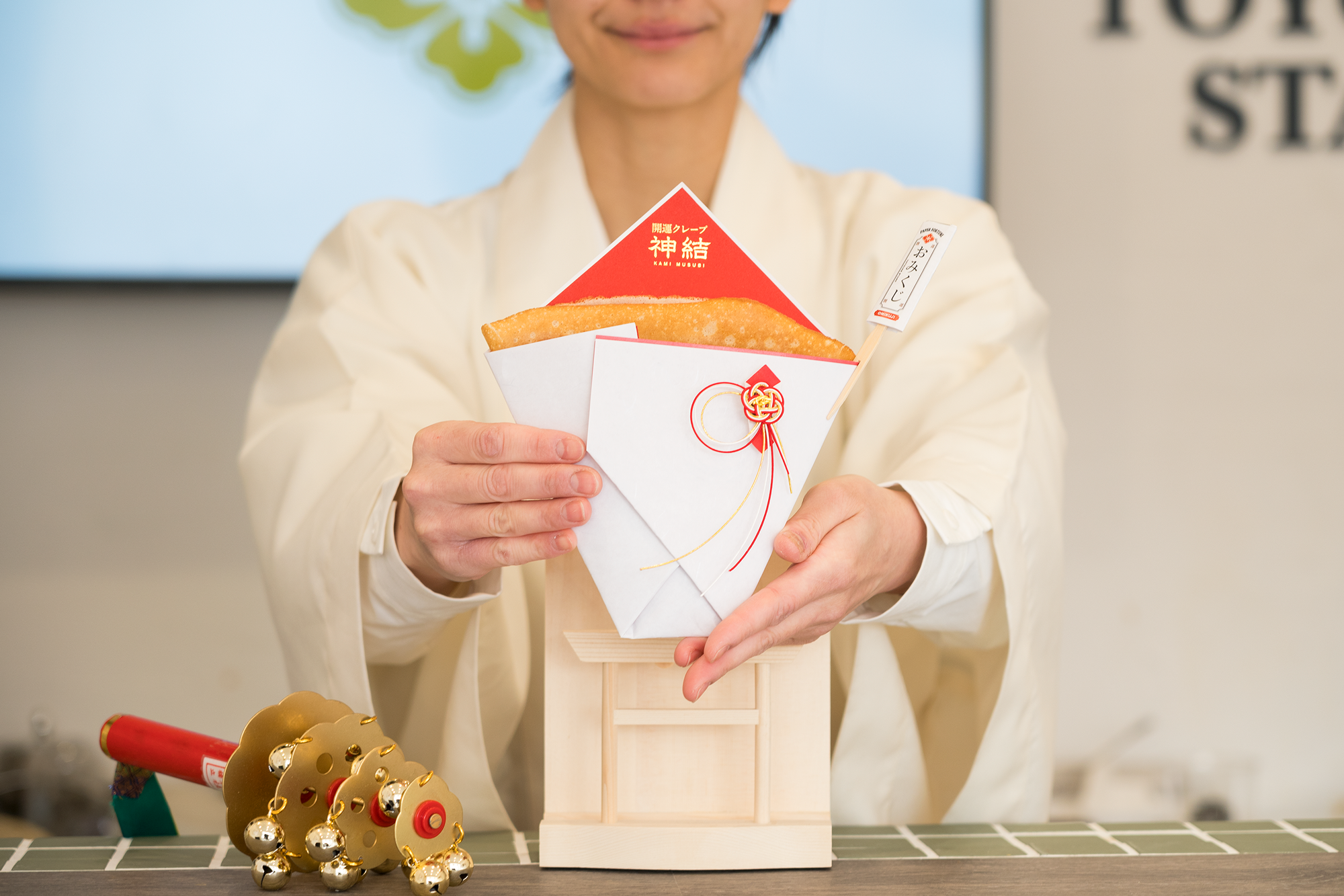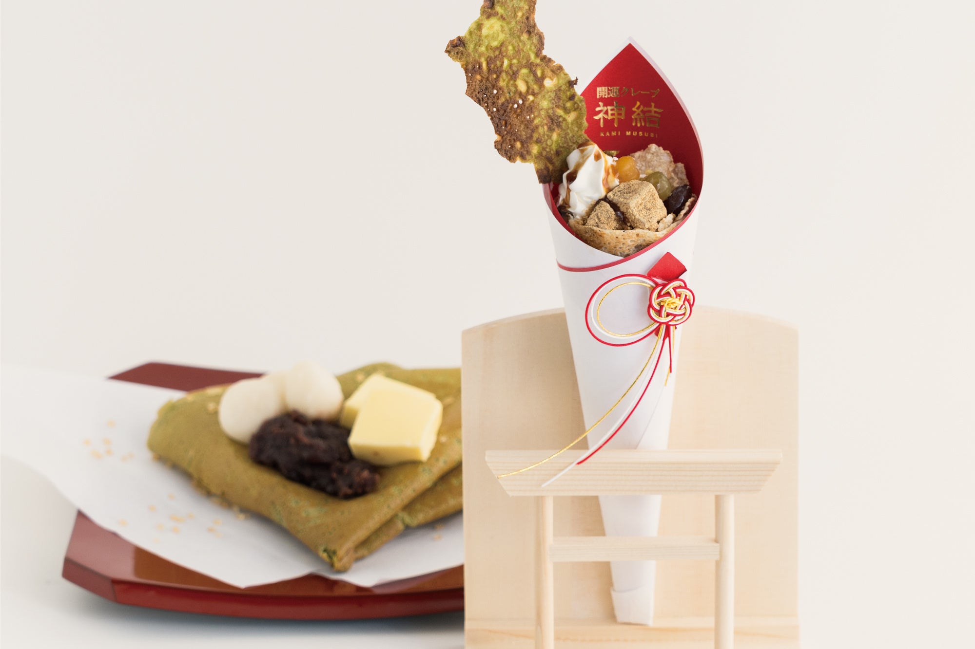 神結のクレープは神饌に用いられる食材を使用することで、心も身体もお清めし開運へと導き、お召し上がりになる方の想いや願いを結び繋ぐきっかけをつくり、おいしく開運を引き寄せます。
