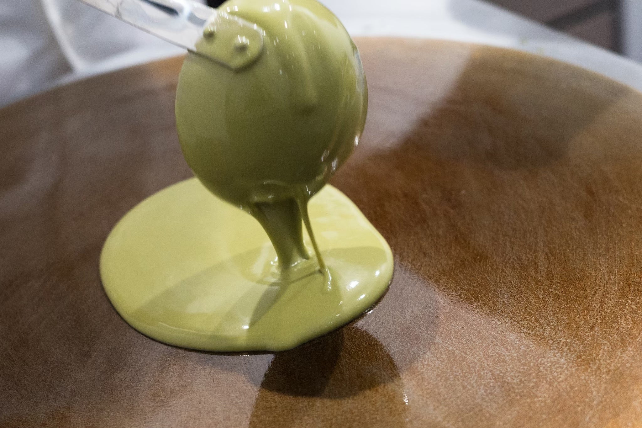 伊勢神宮のおひざもと、伊勢志摩地域一体で作られるコシヒカリを100%使用した「米粉」の生地と、世界農業遺産にも登録された製法でつくられる煎茶の"一番茶のみ"を使用した「深蒸し緑茶」の生地、2種がありその中でも、パリパリ食感ともちもち食感の2種類に分かれ、生地は全てで4種類と、味にもかなりのこだわりっぷり。