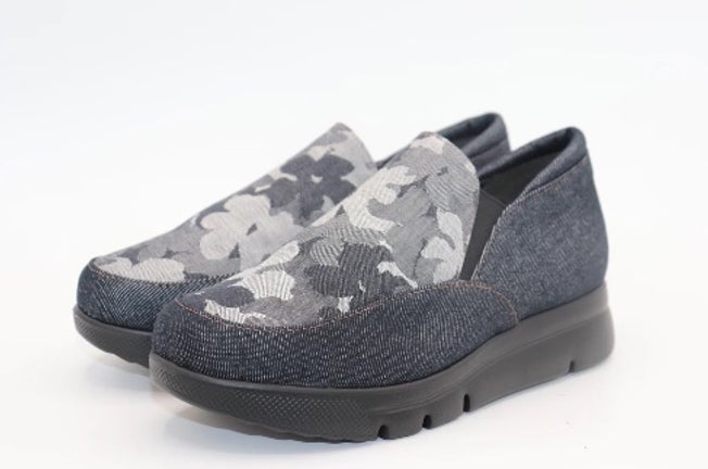 [NOUS MARCHONS A' KOBE] スリッポン デニム シューズ レディース 日本製 4E おしゃれ コンフォートシューズ ウォーキング 歩きやすい 軽量 幅広 本革 花柄 抗菌 防臭 脱ぎ履きしやすい 靴 NO.1196