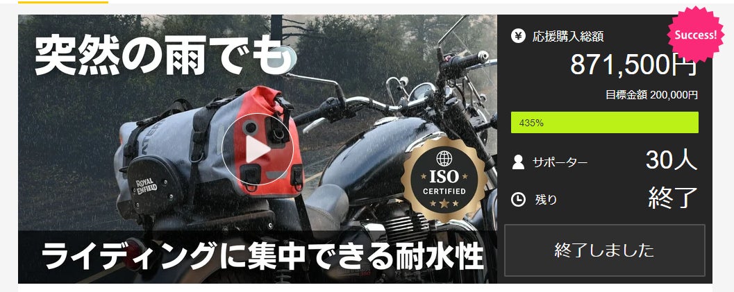 プロジェクト名:【超防水バッグ】耐水圧20,000mm超の防水生地!ツーリング・スポーツの相棒に