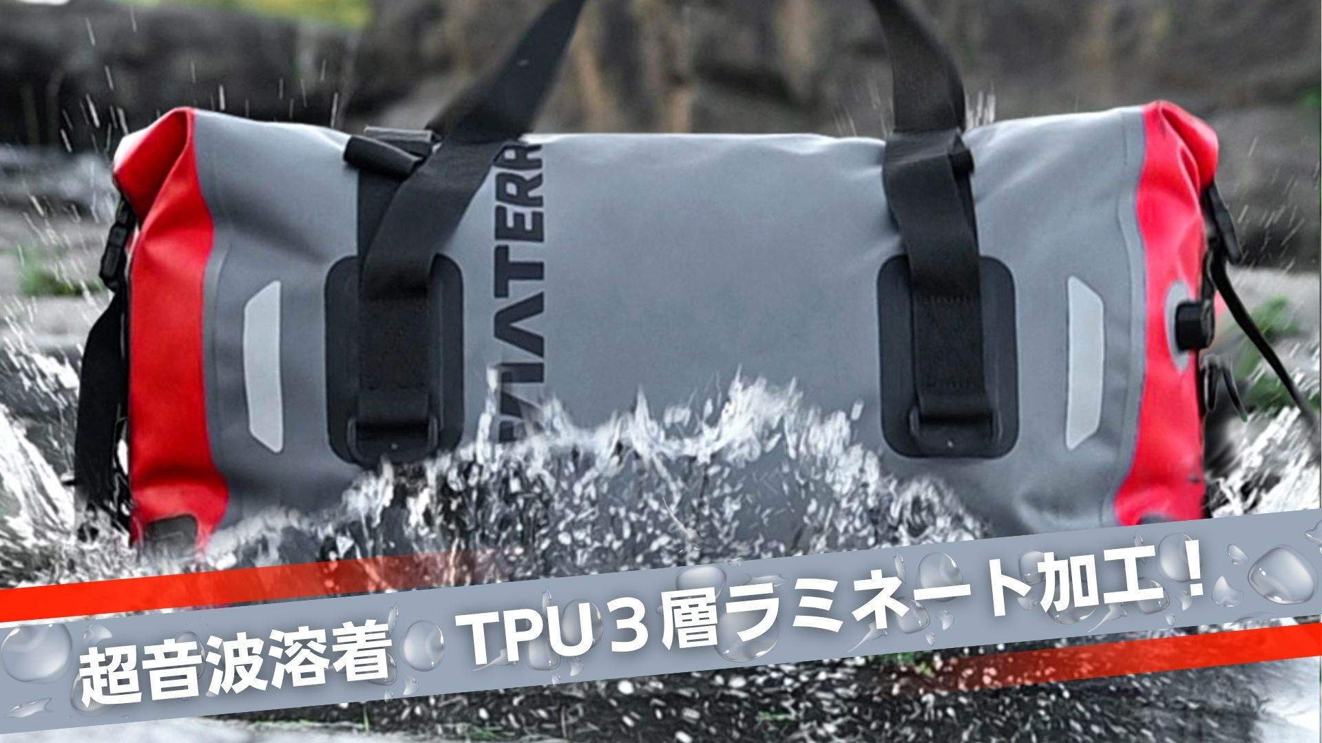 耐水性&耐久性&耐摩耗性に優れた「3層TPU両面ラミネート加工」最新防水テクノロジー「超音波溶着技術」の超防水バッグ【ViaTerra Drybag】。ISO811取得 耐水圧20,000mm超!
