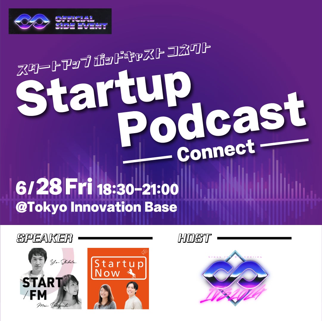 ポッドキャスト番組「START/FM(運営:柴田陽氏、関口舞氏)」「Startup Now(運営:中山悠里、稲荷田和也)」が出演するイベント「Startup Podcast Connect」をTokyo Innovation Baseで開催します。本イベントは、スタートアップ専門のポッドキャスト企画制作「StartPods」を運営するJobTales株式会社が、国内最大のスタートアップカンファレンス「IVS」を運営する株式会社Headline Japanと連携し、IVS公式サイドイベントとして開催します。