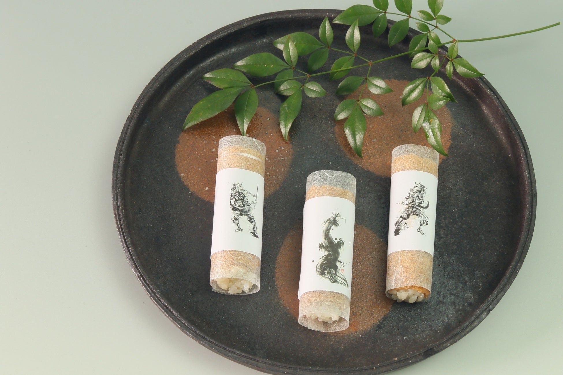 2024年2月12日(月)〜3月19日(火)の期間限定で松屋店頭にて販売。第2弾となる「豊川稲荷 寺宝館 特別展示」を記念して墨絵アーティスト西元祐貴氏作品の特別パッケージ 「昇竜・阿吽の狐」を提供。