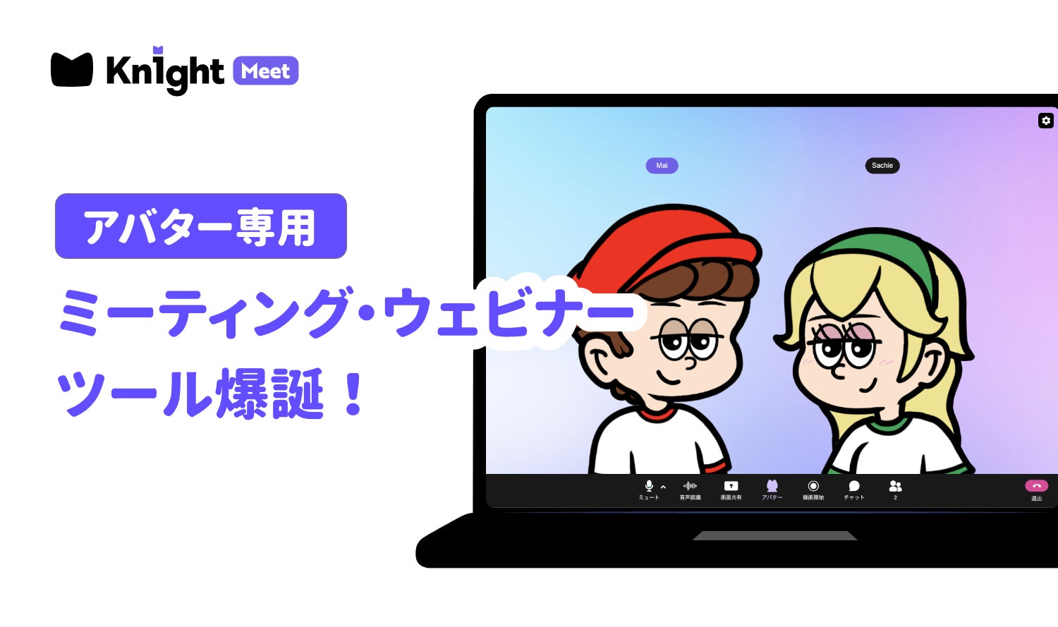 Kn1ght Meetはアバター専用のオンラインミーティング・ウェビナーツールです。顔出しなしで、1000人まで視聴可能なウェビナーやミーティングを開催できます。キャラクターの声でアバターが会話できる「AI声優」機能や、表情をリアルタイムで捉えてアバターに反映させる顔認識機能も搭載。ブラウザ、デスクトップアプリ、モバイルからご利用いただけます。