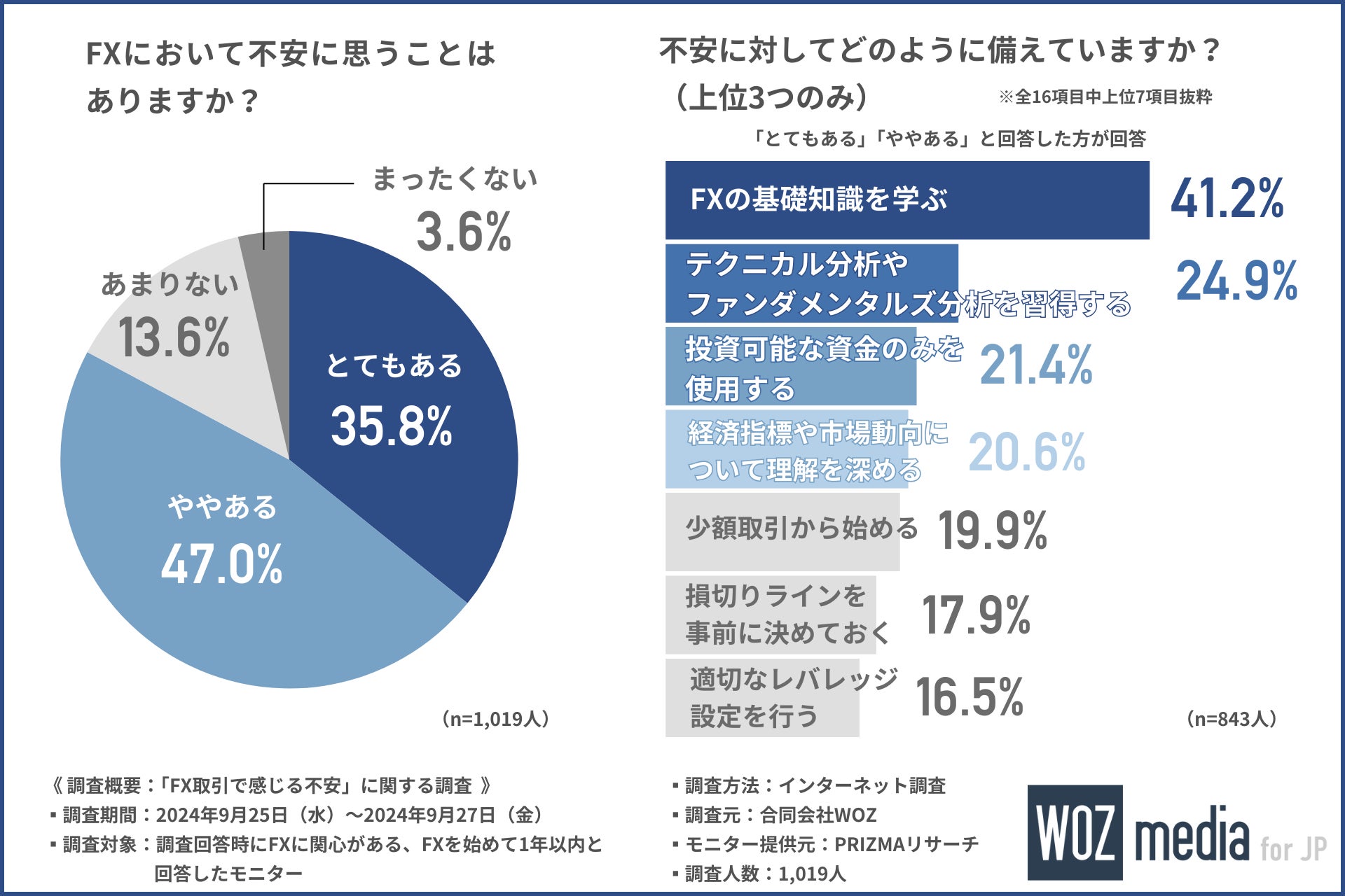 合同会社WOZ(所在地:東京都渋谷区、代表社員:小畑 和彰)は、FXに関心がある、FXを始めて1年以内の方を対象に、「FX取引で感じる不安」に関する調査を実施しました。