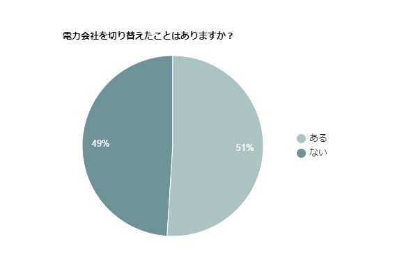 電力会社を切り替え有無について調査すると、51%の方が「電力会社を切り替えた経験がある」と回答しました。