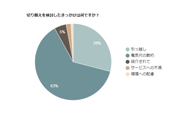 電力会社の切り替えを検討したきっかけで一番多かったのは、「電気代の節約」で63%でした。