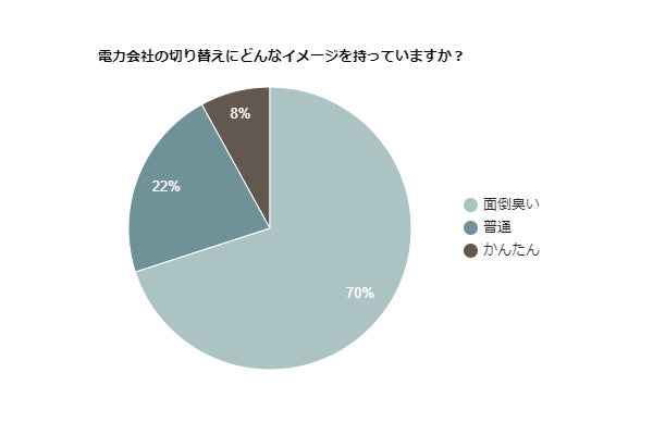 電力会社の切り替えにどんなイメージを持っているかを調査したところ、「面倒くさい」と回答した方が70%と多い結果となりました。
