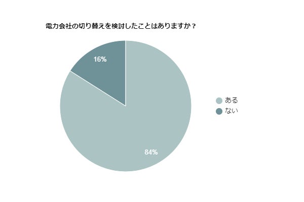 電力会社の切り替えを検討したことがあるかを調査したところ、84%の方が「ある」と回答しました。