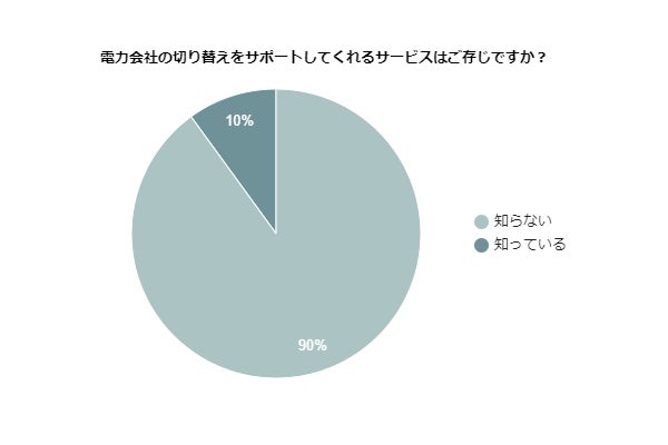 電力会社の切り替えをサポートしてくれるサービスを知っているのは90%という結果となりました。