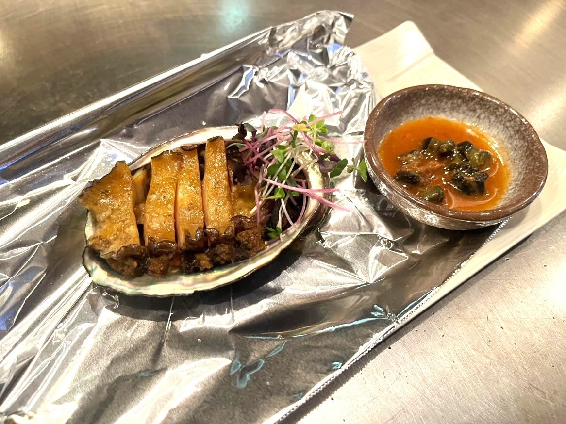 続いて、2月にコラボレーションするのは、SNSでバズっている「デミオムバーグ」で一目置かれている銀座の名店「鉄板処 めぐろ」です。素材の美味しさを最大限に引き出す「焼き」にこだわった鉄板料理が楽しめます。提供するメニューは、豊かな環境で育った洋野町産アワビの鉄板焼き、肉厚で豊かな風味が特徴のシイタケを使用した「ジャンボ椎茸の肉詰め」など、洋野町産の素材の良さを活かした贅沢な鉄板焼きが味わえます。ぜひ、洋野町の魅力と銀座人気店のコラボメニューをお楽しみください。
