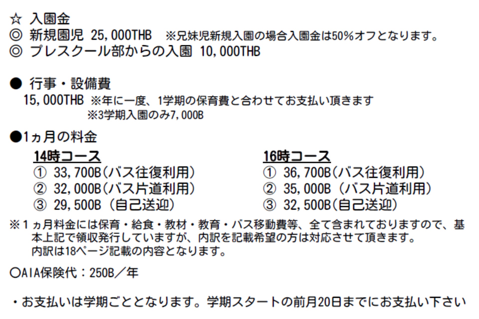 <トンロー園幼稚部の料金システム>