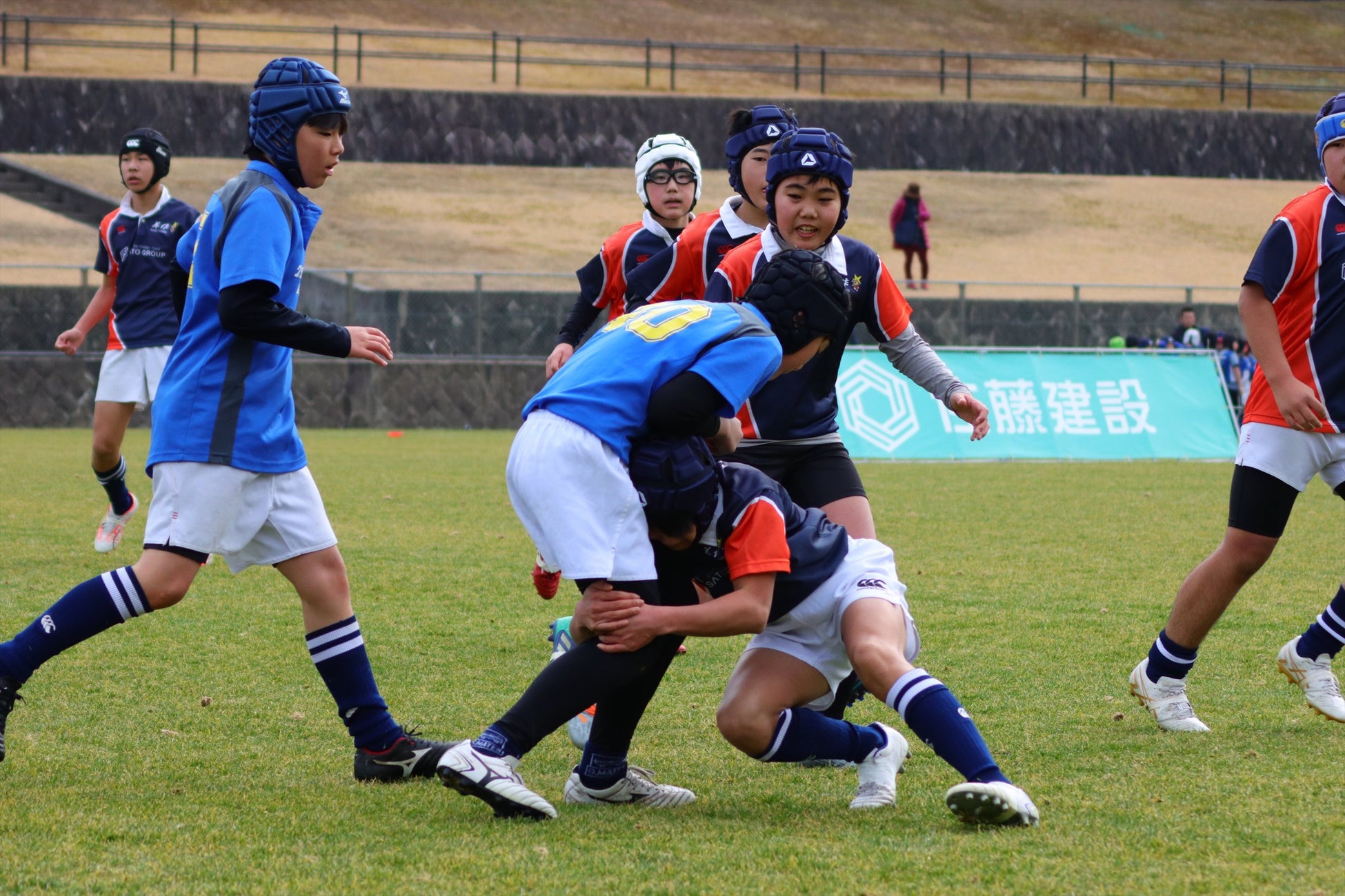 =岡山県内から、5チーム約190名の選手たちが岡山県美作ラグビー・サッカー場に集いました。また、本年も、出場選手たち全員に、佐藤建設 並びにSATO GROUPから、記念品の贈呈も行いました。佐藤建設は、今後も、美作ラグビースクールを応援してまいります。