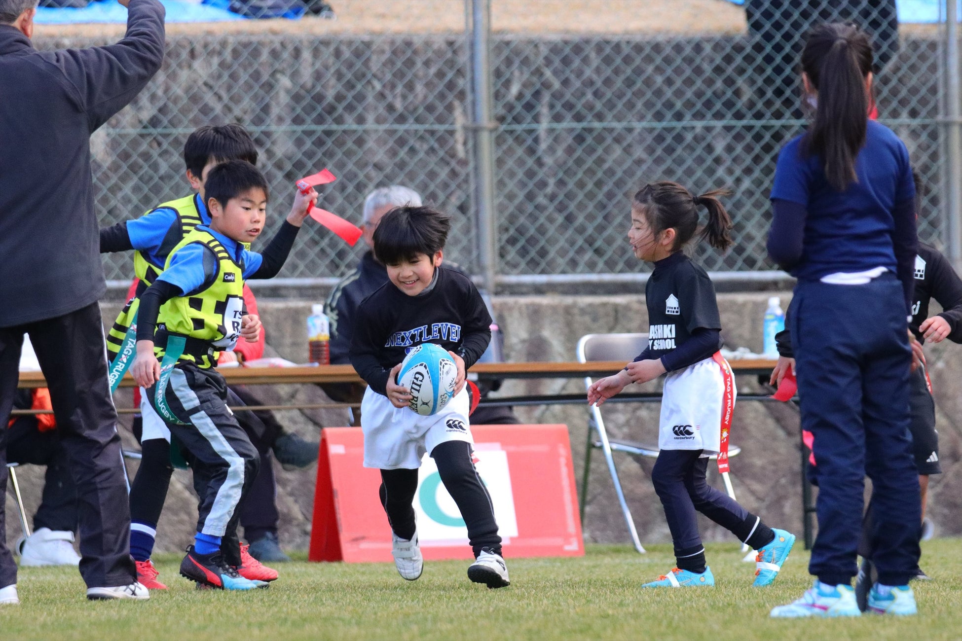 =タグラグビー(低学年以下・5人制)も、大いに盛り上がりました。