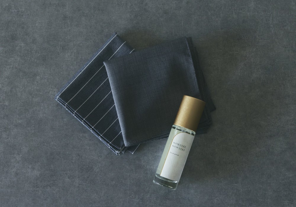 オードパルファンorディスカバリーセットを含む9,900円(税込)以上ご購入のお客様にNOWHERE NOWHEREのロゴマークが刺繍されたオリジナルハンカチをプレゼント