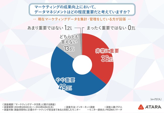 デジタルマーケティング支援企業のアタラ株式会社(本社:神奈川県横浜市、 代表取締役CEO:杉原 剛、以下、アタラ)は、企業のマーケティング担当者のうち、現在マーケティングデータを集計・管理している人を対象に「マーケティングデータ活用に関する調査」を実施しました。