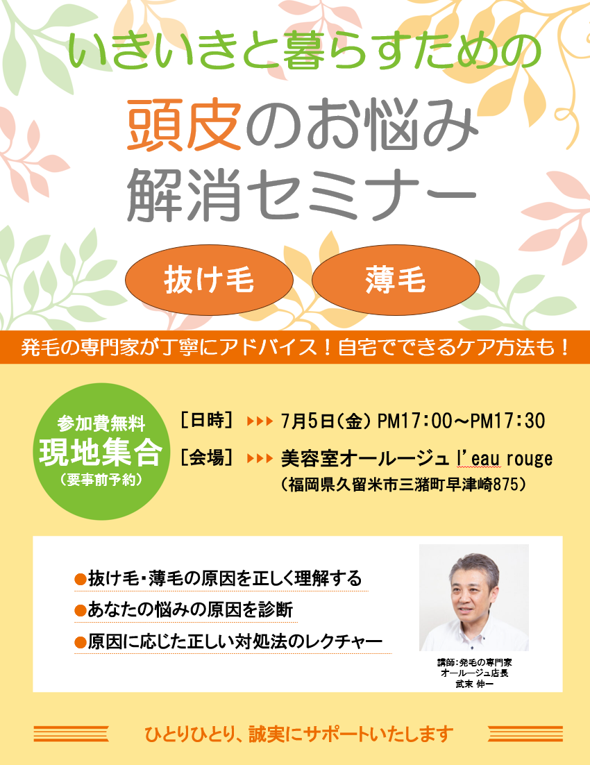 いきいきと暮らすための 頭皮のお悩み解消セミナー(抜け毛・薄毛)