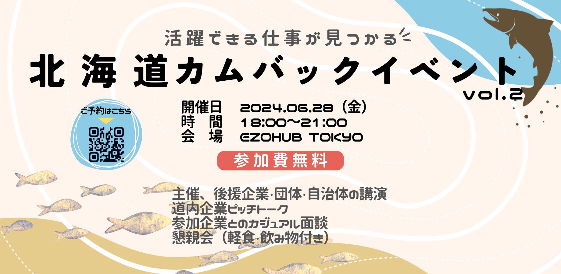 北海道の仕事の魅力を発見する『北海道カムバックセミナーvol.2』が6/28(金) EZOHUB TOKYOにて開催!北海道へのUIJターンの第一歩に。