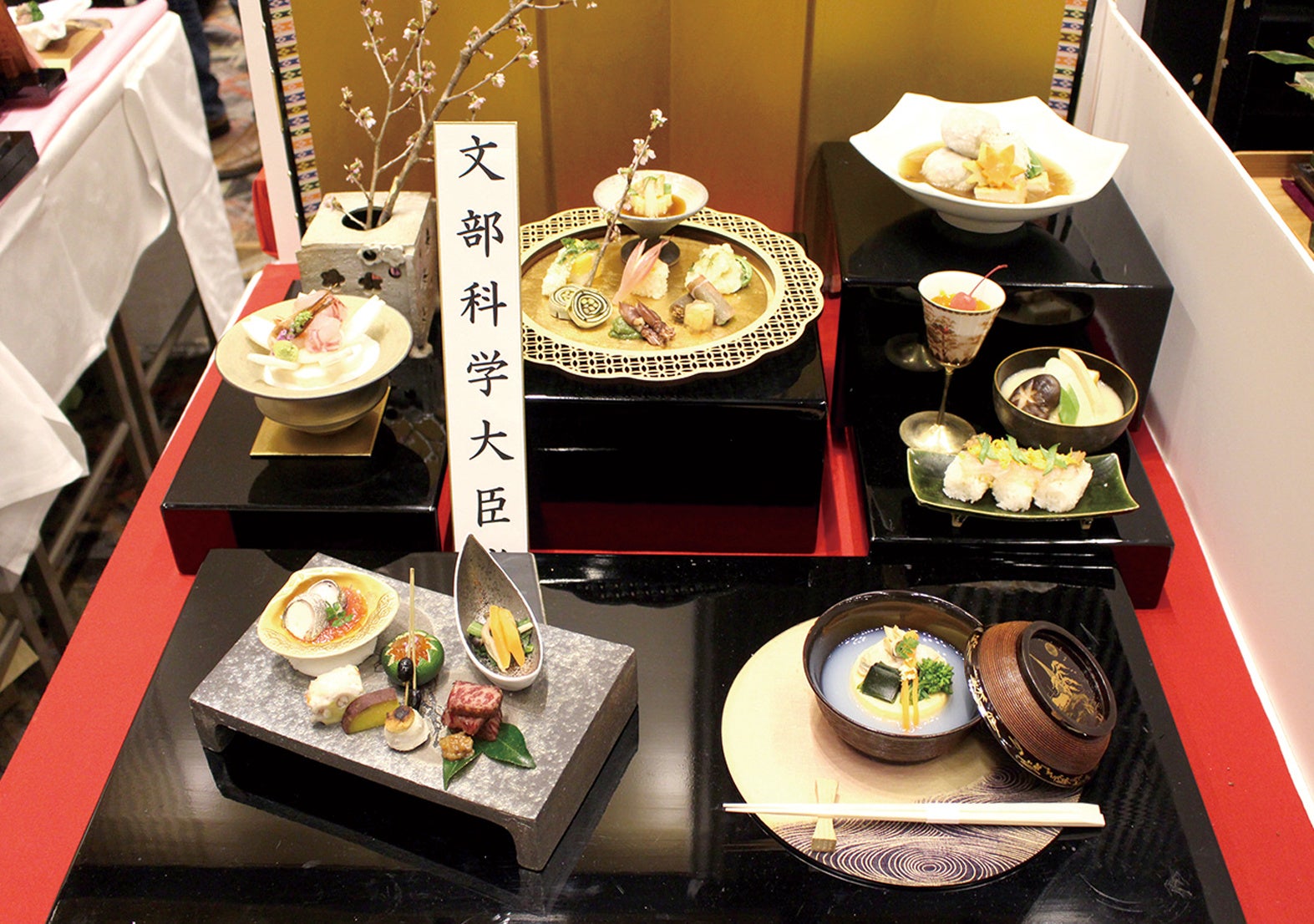 文部科学大臣賞を受賞した本間氏のコンセプトは「山形の四季」。焼き八寸は冬を表し、米沢牛、寒鱈、イクラなど全て山形の季節の食材で仕上げた。