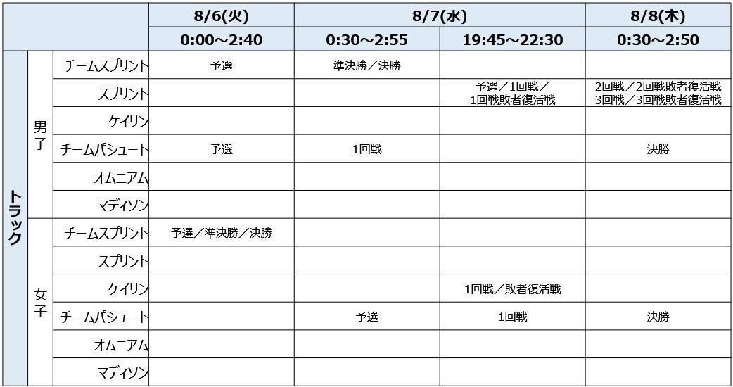 「パリ2024オリンピック」自転車トラックレース競技日程