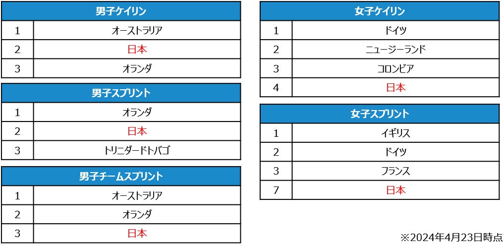 2024年4月15日:「UCIトラックオリンピックランキング 2022-2024」決定