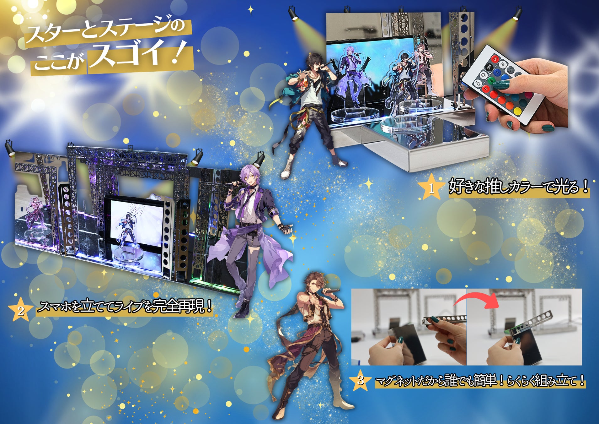 『スターとステージ』は、推しのアクスタやフィギュアを設置して、まるで本物のライブステージのように演出できる革新的な製品です。