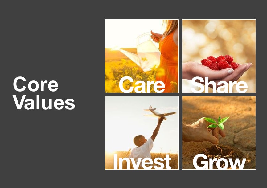 組織全体の協力体制の構築にあたっては、組織のCore-valuesと位置付ける4つの価値観、