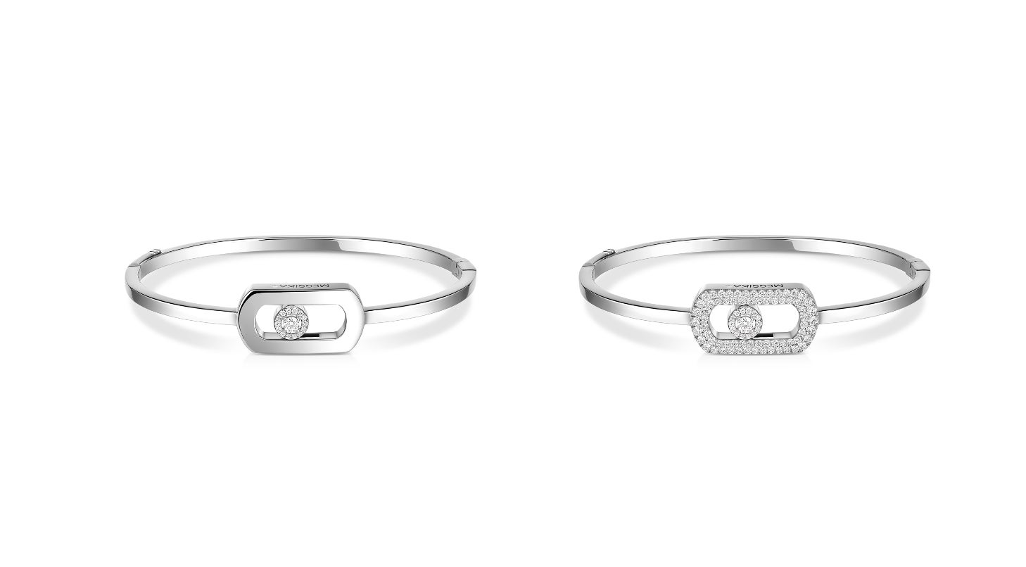 左から : 「ソー ムーヴ」バングル ホワイトゴールド、ダイヤモンド ¥803,000