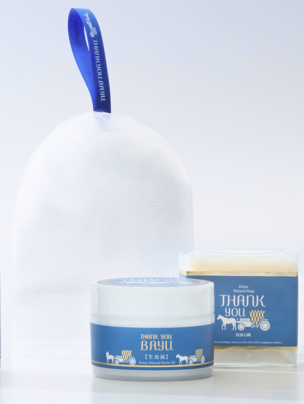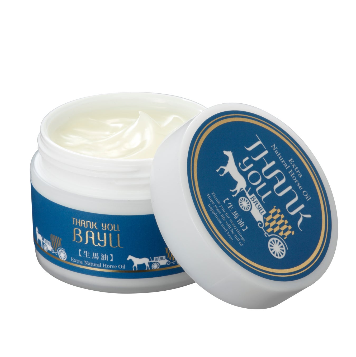 サンキューバーユの「こうね100%生馬油」は、一頭の馬からわずか数キロしか得ることができない※、馬刺しとしても食される希少な部位「こうね(タテガミの根元)」の油脂のみを原料に、酸化防止剤・保存料・香料などの添加物を一切使用せず、国内で丁寧に精製・精油した100%天然オイルです。古くから火傷や乾燥肌などのケアに使われている一般的な馬油と比べ、においが少なく、サラッとしているため、美容オイルとしても愛用されています。(※一般的な馬油は馬一頭約1,000kgから腹・尻部を中心に約200kg得られる)
